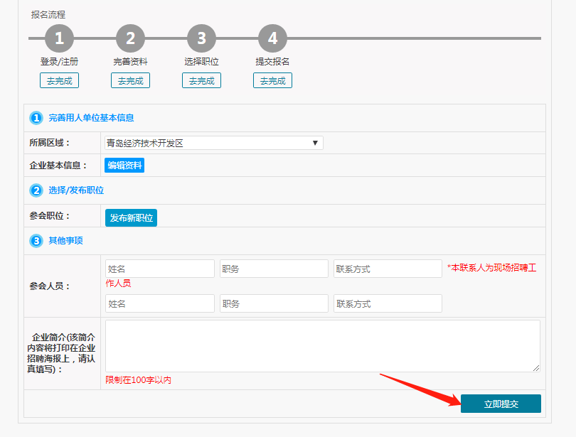 5、企业报名信息全部填好后,点击“立即提交”即可