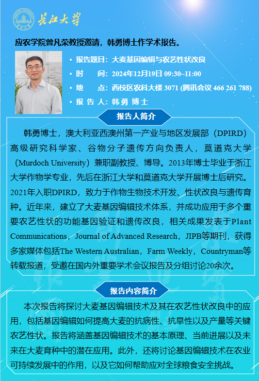 开云足球体育(中国)官方网站2024年学术报告(二十七):大麦基因编辑与农艺性状改良