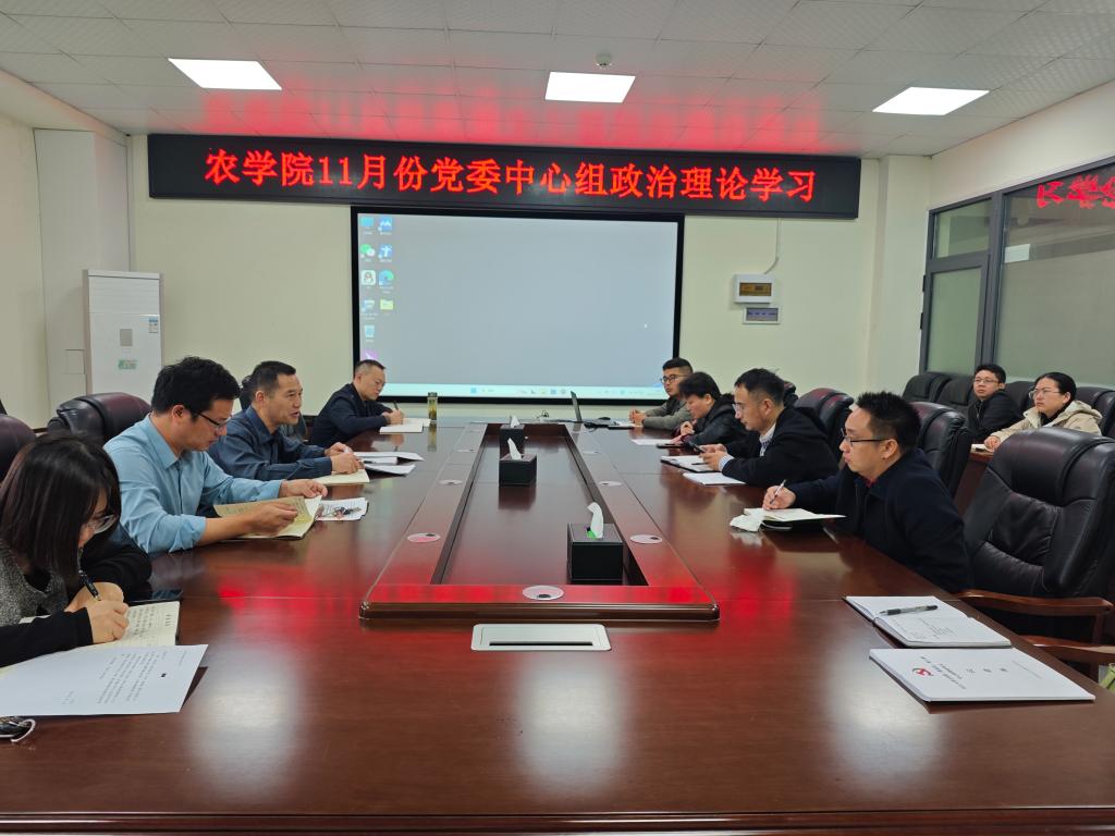 (通讯员 付雪娇)11月14日上午,开云足球体育(中国)官方网站在农科大楼3064会议室召开11月份党委理论学习中心组集体学习会。学院党委委员、领导班子成员和各党支部书记、系部主任、科室负责人参加学习,会议由学院党委书记周锦华主持。