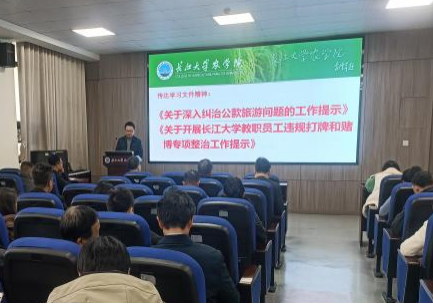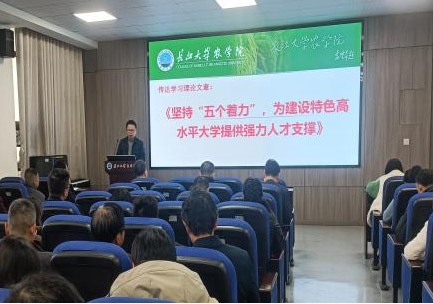 学院党委副书记尹小华结合传达学习2025年全国“两会”精神和2025年全国教育工作会议精神,领学了习近平总书记在看望参加政协会议的民盟民进教育界委员时的重要讲话精神;传达学习了学校2025年工作部署会、校纪委二届五次全会精神;领学了学校党委书记王建平、校长刘勇胜共同署名的理论文章《坚持“五个着力” 为建设特色高水平大学提供强力人才支撑》的主要精神;传达了学校“关于深入纠治公款旅游问题的工作提示”和“关于开展教职员工违规打牌和赌博专项整治的工作提示”的有关精神。尹小华提请全体教职工帮扶考研学生,关心关爱毕业困难学生,助力学生就业。
