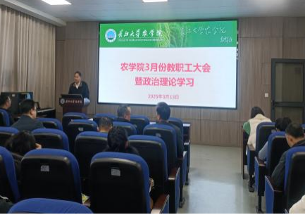 (通讯员 刘晓雪)3月13日下午,开云足球体育(中国)官方网站在农科大楼3073会议室召开全体教职工大会,开展3月份政治理论学习,通报并安排近期主要工作,常务副院长方正武主持会议。