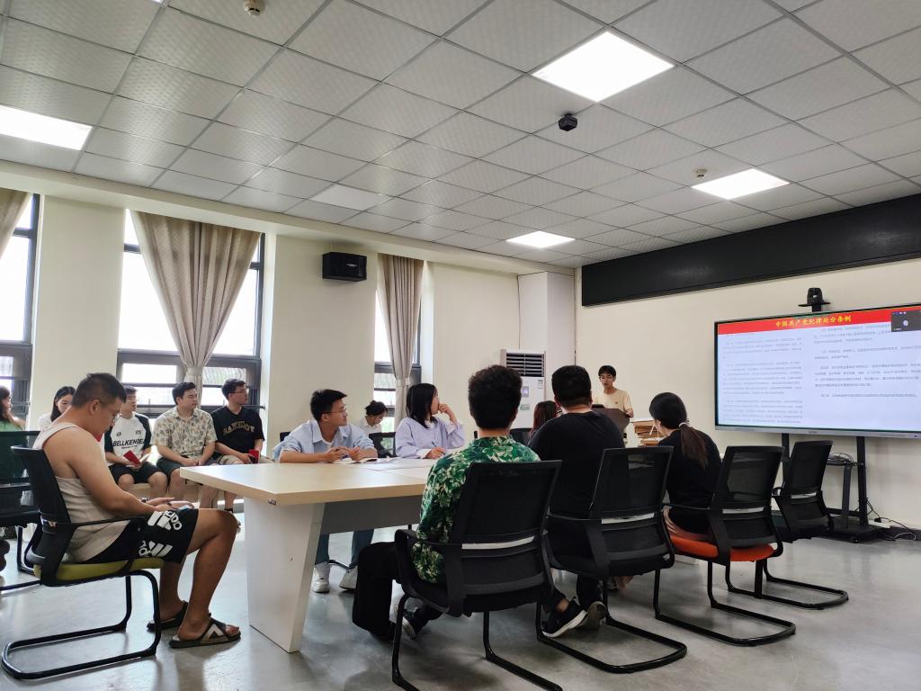 “全体起立,举起右拳,跟我宣誓……”张银带领全体党员重温入党誓词。罗丽娅对本月党支部党费收缴情况简要说明。罗丁钒为全体党员做《井冈山精神》微党课讲授。常浩雯、吴雅琴带领全体党员学习党的创新理论。“作为新时代的毕业生党员,我们肩负着模范引领的重要使命。我们必须时刻严于律己,在面对重大问题和是非判断时,我们要坚守正确的政治立场,始终与党中央保持高度一致。”陈会丽、江冰、陈悦等结合日常学习生活和工作,交流研讨《中国共产党纪律处分条例》学习心得。
